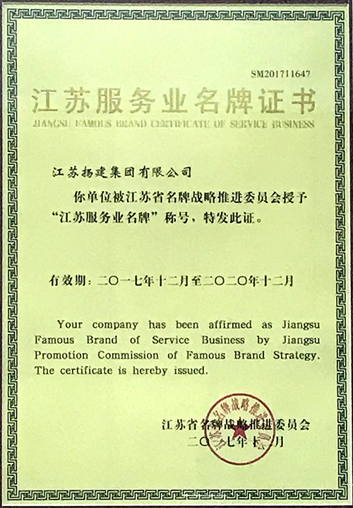 集團(tuán)榮獲2017年度“江蘇服務(wù)業(yè)名牌”稱號(hào)