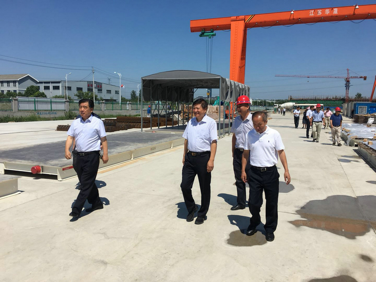 揚(yáng)建網(wǎng)訊 為了解我市建筑產(chǎn)業(yè)化發(fā)展現(xiàn)狀和發(fā)展過程中存在的問題、促進(jìn)建筑產(chǎn)業(yè)綠色發(fā)展、推動我市建筑業(yè)轉(zhuǎn)型升級,同時為市人大常委會聽取并審議我市建筑產(chǎn)業(yè)化發(fā)展情況提供客觀實(shí)際的參考意見,8月24日上午,市人大常委會副主任楊正福、副秘書長吳效安等一行8人,來到江蘇華晟新型建筑科技有限公司視察調(diào)研。華晟公司董事長梁云彪、總經(jīng)理季學(xué)軍等陪同調(diào)研。