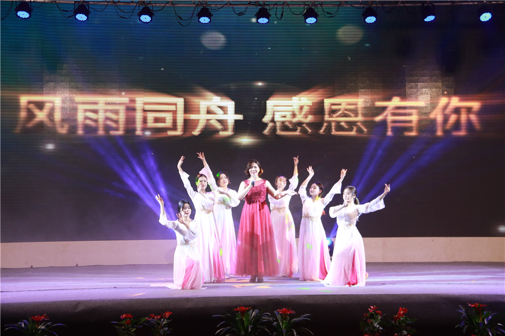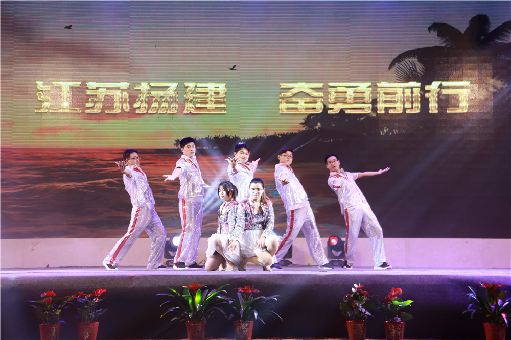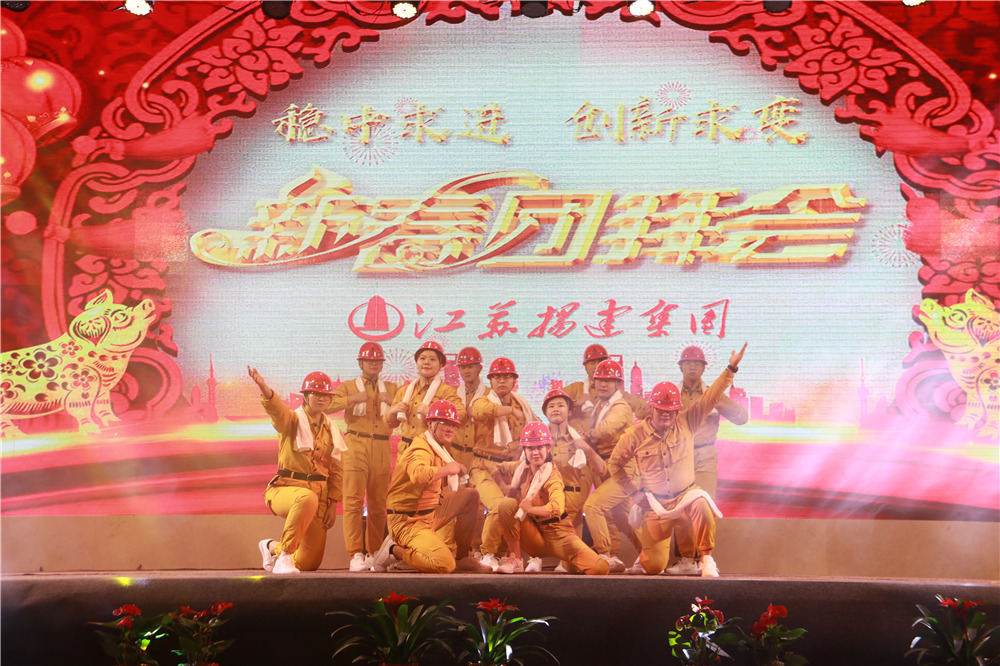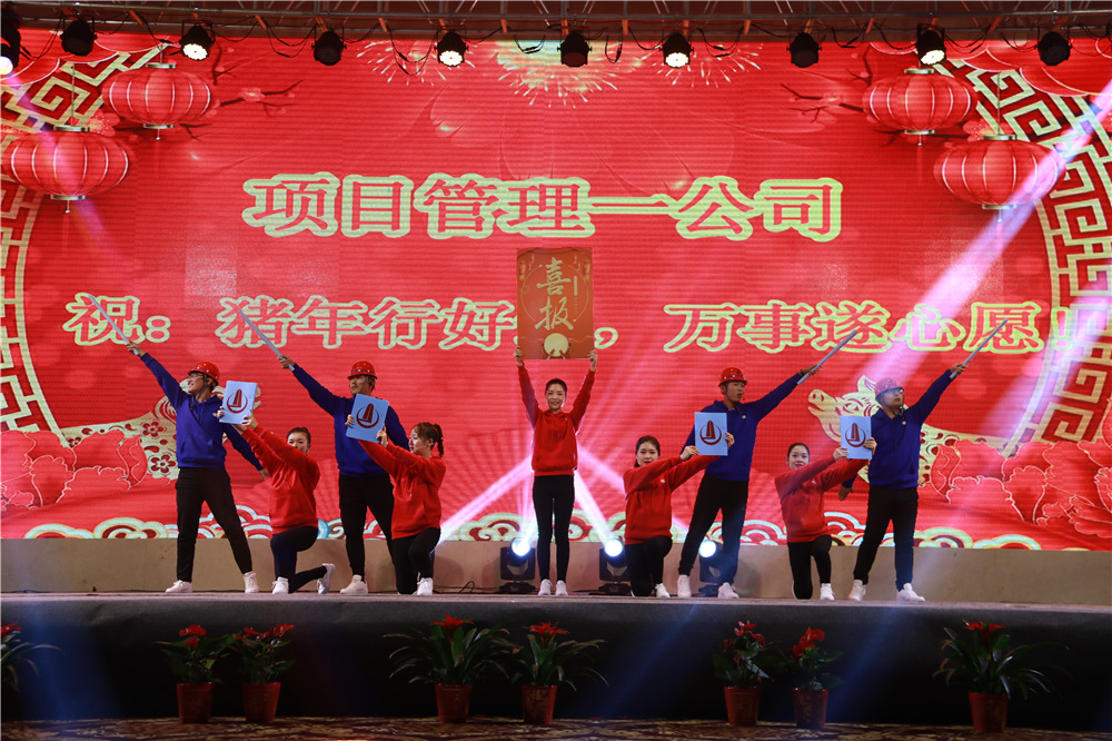 隨后,華中華鼎公司聯(lián)袂表演歌伴舞《我愛你中國&相親相愛一家人》,四公司員工表演的音樂快板《揚(yáng)建花開大上?!?,講述了四公司2108年發(fā)展喜事多,業(yè)績上臺(tái)階,全速開發(fā)江浙滬的發(fā)展業(yè)績;樁基公司以評(píng)話+講述+歌舞的形式表演了《我們是快樂的一家人》;一公司的搖滾說唱《一公司,爭第一》節(jié)目,表達(dá)了舍我其誰、永爭第一的豪情;三公司年輕員工表演了音詩畫劇《建筑“舞”者》;二公司的90后員工表演了,配樂朗誦《厲害了,揚(yáng)建90后》,表達(dá)了立志與前輩們一起譜寫揚(yáng)建發(fā)展新篇章的雄心;海南島的阿哥阿妹表演了舞蹈《筑夢(mèng)城市》;機(jī)電公司的說唱歌舞《追夢(mèng)揚(yáng)建》,描繪了2019將是承載新夢(mèng)想、發(fā)力新業(yè)態(tài)的嶄新一年;華發(fā)公司的音樂短劇《新時(shí)代的弄潮者》,展示了揚(yáng)建人揚(yáng)建人薪火相傳66載,緊跟時(shí)代,勇立潮頭的精神面貌;華盛周材公司最后表演了寓意深刻的歌舞+武術(shù)《風(fēng)雨同舟,感恩有你》。