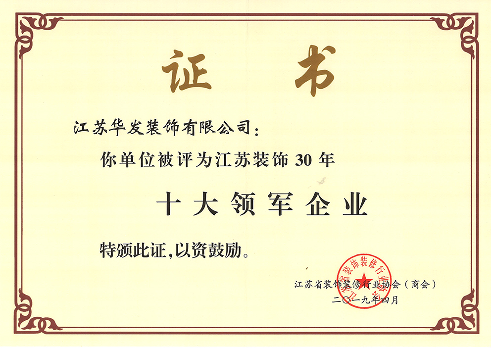 華發(fā)榮膺江蘇裝飾30年十大領軍企業(yè)