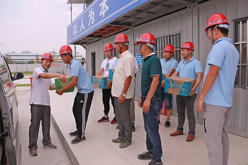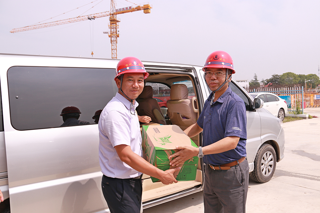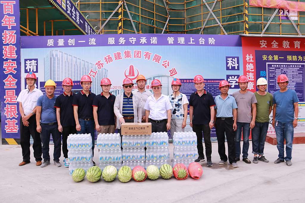 揚(yáng)建網(wǎng)訊 近來(lái),連續(xù)的高溫天氣驕陽(yáng)似火地烤驗(yàn)著揚(yáng)州,也烤驗(yàn)著我們堅(jiān)守崗位的每一位員工。為切實(shí)做好項(xiàng)目一線防暑降溫工作,7月22日至26日,集團(tuán)領(lǐng)導(dǎo)及集團(tuán)工會(huì)、團(tuán)委、人力資源部、安全部、總師辦等相關(guān)部門負(fù)責(zé)人先后赴揚(yáng)子新苑D區(qū)安置房一期北組團(tuán)項(xiàng)目工程、警示教育基地、湯汪污水處理廠三期擴(kuò)工程、現(xiàn)代農(nóng)業(yè)科技創(chuàng)新中心產(chǎn)業(yè)化基地、廣沃電氣控制成套設(shè)備項(xiàng)目工程、公共衛(wèi)生中心、高郵人民醫(yī)院東區(qū)醫(yī)院(二期)、儀征2017-39#地塊、化學(xué)之光、沈飛601研究所項(xiàng)目、揚(yáng)州軟件園南區(qū)工程、華晟新型建筑科技、無(wú)錫食品城工程項(xiàng)目部等近20個(gè)項(xiàng)目部進(jìn)行夏季慰問(wèn),為冒著酷暑?yuàn)^戰(zhàn)在一線的項(xiàng)目部管理人員、施工人員送去了飲料等消暑物品。