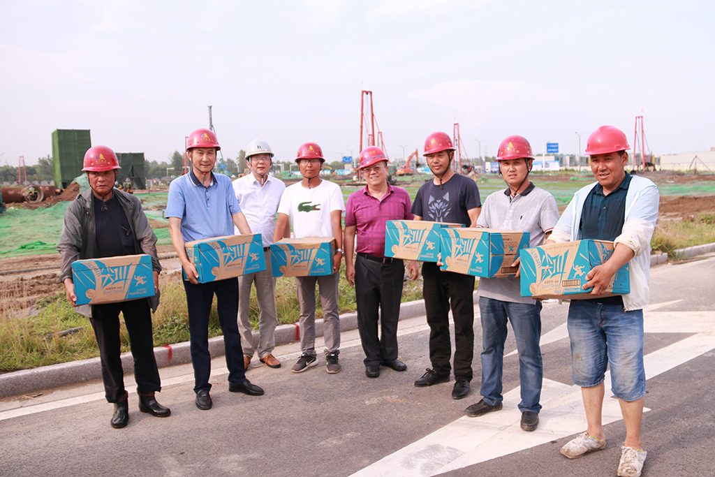 黨委書記康往東在慰問(wèn)現(xiàn)代農(nóng)業(yè)科技創(chuàng)新中心產(chǎn)業(yè)化基地現(xiàn)場(chǎng)施工人員時(shí),首先察看了項(xiàng)目施工現(xiàn)場(chǎng),詳細(xì)了解了項(xiàng)目員工的工作與生活狀況。要求強(qiáng)化安全措施,確保工程質(zhì)量,保障施工人員的人身健康和安全。總經(jīng)理鄒厚存在慰問(wèn)工地的同時(shí),認(rèn)真檢查詢問(wèn)項(xiàng)目夏季高溫現(xiàn)場(chǎng)安全生產(chǎn)和落實(shí)市64號(hào)文件精神情況。