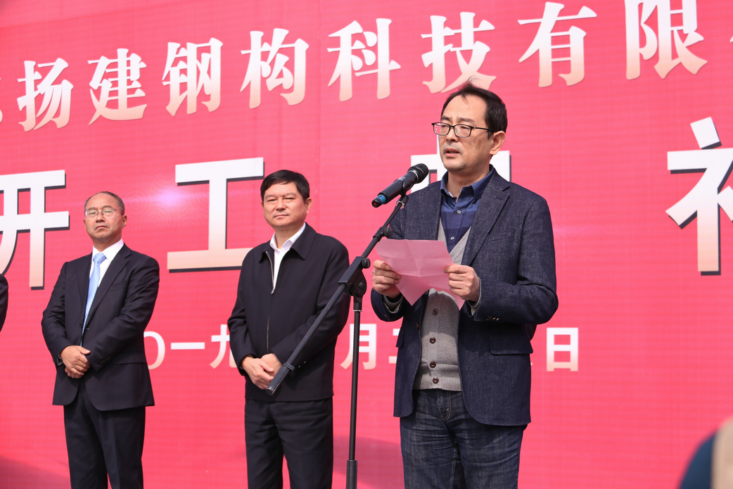 王吉騫、劉長榮兩位領(lǐng)導(dǎo)也分別代表市建工控股公司及儀征市開發(fā)區(qū)管委會(huì)致辭。對(duì)鋼構(gòu)科技公司項(xiàng)目順利開工表示祝賀,并對(duì)公司未來發(fā)展表示了期許,同時(shí)對(duì)于打造綠色示范基地、在確保生產(chǎn)安全的情況下高效率、高質(zhì)量完成項(xiàng)目提出了期望。