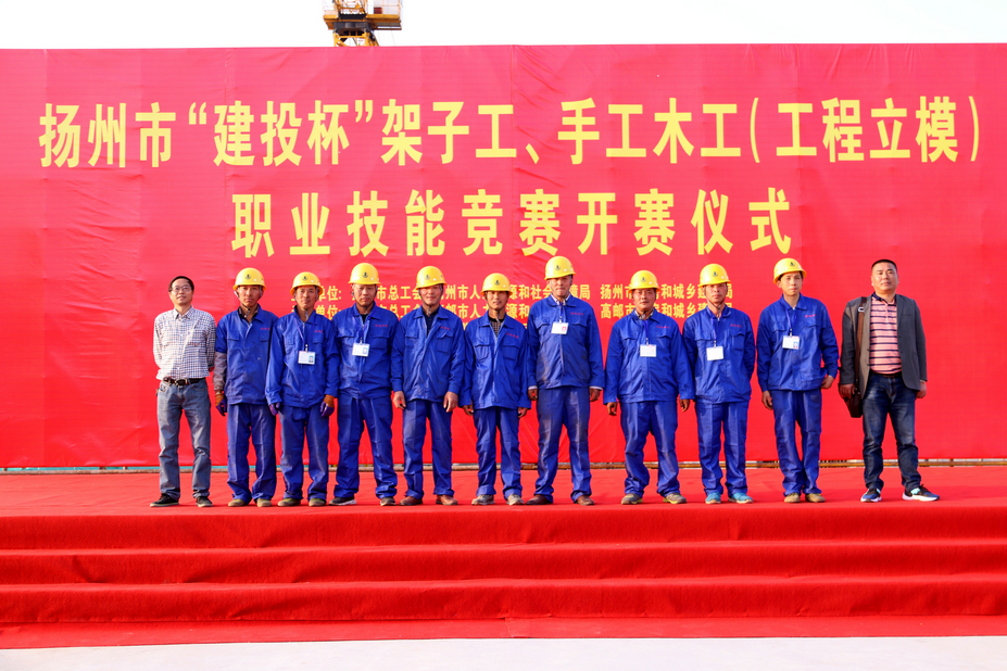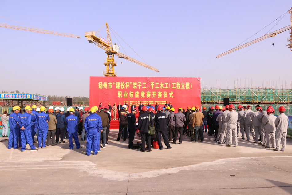 揚(yáng)建網(wǎng)訊 10月31日,由揚(yáng)州市總工會(huì)、人社局、住建局聯(lián)合主辦,高郵市總工會(huì)、人社局、住建局承辦,高郵市建設(shè)投資發(fā)展集團(tuán)有限公司協(xié)辦的揚(yáng)州市“建投杯”架子工、手工木工(工程立模)職業(yè)技能競(jìng)賽在高郵市潤豐苑項(xiàng)目部工地隆重舉辦。