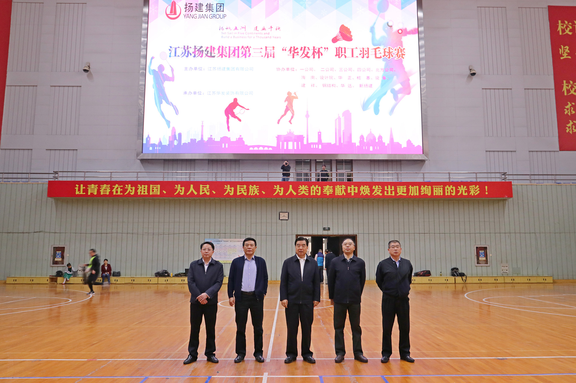 揚(yáng)建網(wǎng)訊 11月16日,集團(tuán)工會在揚(yáng)州大學(xué)體育中心成功舉辦第三屆“華發(fā)杯”職工羽毛球比賽。集團(tuán)總裁梁云彪、總經(jīng)理鄒厚存、常務(wù)副總裁沈國仁、黨委副書記陳滸、總經(jīng)理助理孔凡裕,華發(fā)公司執(zhí)行總經(jīng)理陳明、黨總支副書記李浩煒,集團(tuán)工會副主席郭太琮等領(lǐng)導(dǎo)分別參加了開閉幕儀式。