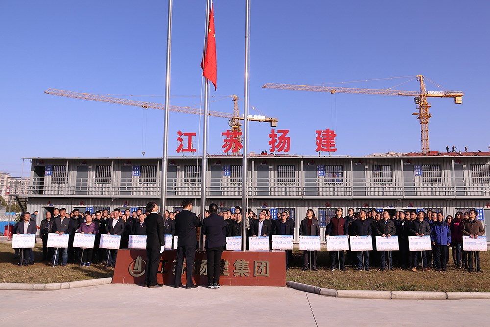 揚(yáng)建網(wǎng)訊 11月19日早晨,集團(tuán)黨委組織在揚(yáng)各基層黨組織共20個黨支部逾260名黨員及積極分子,在集團(tuán)華師大項(xiàng)目部舉行“不忘初心、牢記使命”主題教育升旗儀式。