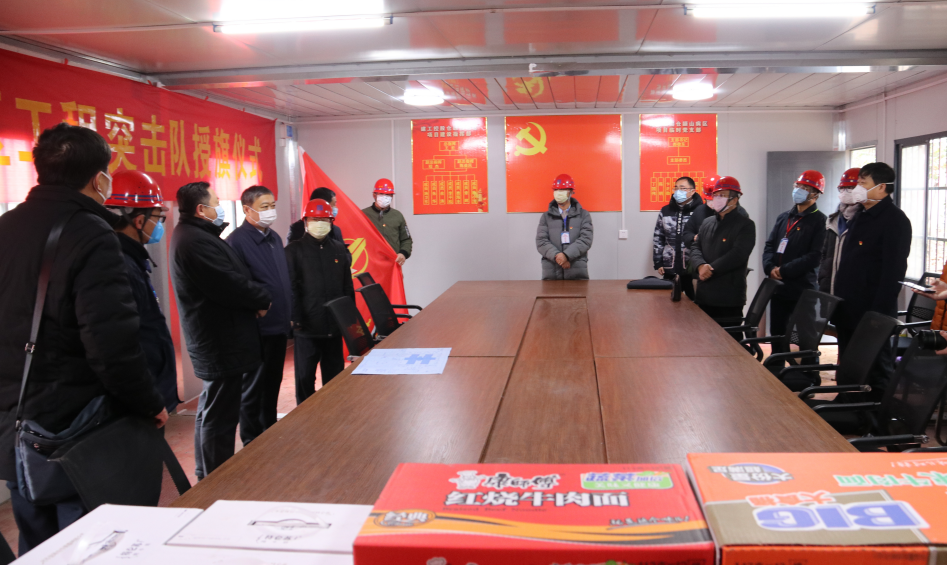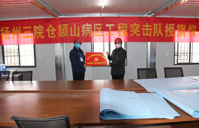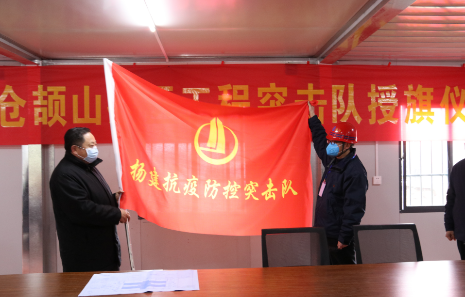 王主任在向我集團(tuán)蒼頡山病區(qū)項目臨時黨支部書記、揚建抗疫防控突擊隊隊長郝敬東授旗,并希望揚建抗疫防控突擊隊能夠克服一切困難,始終發(fā)揚揚建人特別能吃苦、特別能戰(zhàn)斗、特別能奉獻(xiàn)的精神,牢固樹立龍頭企業(yè)的使命意識、擔(dān)當(dāng)意識,確保高質(zhì)量、高效率完成市委市政府交辦的建設(shè)任務(wù),為疫情防控做貢獻(xiàn)。