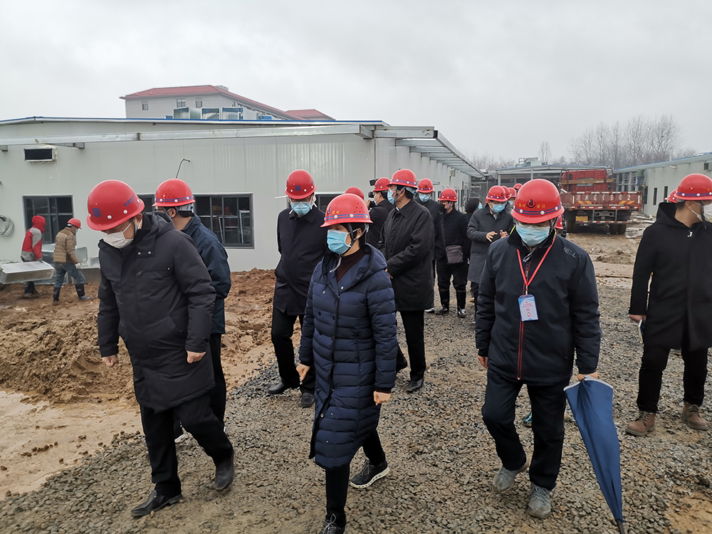 揚(yáng)建微訊 2月15日下午2時(shí)許,揚(yáng)州市政府市長(zhǎng)張寶娟、副市長(zhǎng)何金發(fā)、余珽一行蒞臨我集團(tuán)蒼頡山病區(qū)工程視察指導(dǎo)。
