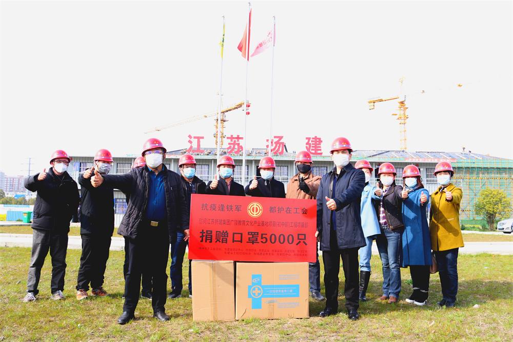 3月11日下午,揚(yáng)州市總工會(huì)副主席韓士軍、建設(shè)工會(huì)主任范華及建管單位相關(guān)負(fù)責(zé)人,來到我集團(tuán)承建的廣陵教育文化產(chǎn)業(yè)基地項(xiàng)目(初中部)工程項(xiàng)目部,在集團(tuán)人力資源部、工會(huì)的陪同下,向項(xiàng)目部捐贈(zèng)了口罩,并對(duì)企業(yè)的復(fù)工復(fù)產(chǎn)作了指導(dǎo)。