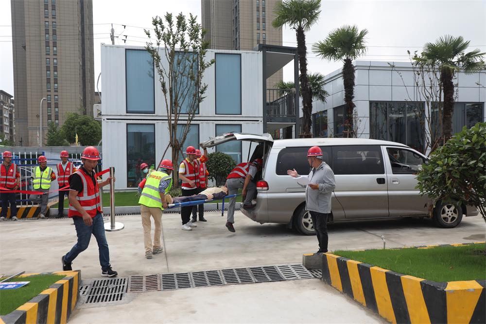 揚(yáng)建網(wǎng)訊 為認(rèn)真貫徹落實(shí)習(xí)近平總書記的一系列重要講話精神,健全安全生產(chǎn)責(zé)任落實(shí),檢驗(yàn)重點(diǎn)項(xiàng)目在建工程應(yīng)急救援預(yù)案的可行性和操作性,提高員工的安全意識(shí)以及在緊急情況下的應(yīng)變和自救能力,6月24日上午,揚(yáng)州頤和醫(yī)療健康中心項(xiàng)目組織開展安全事故應(yīng)急救援演練,項(xiàng)目部全員參與應(yīng)急演練。城控集團(tuán)、城建置業(yè)以及我集團(tuán)公司領(lǐng)導(dǎo)現(xiàn)場(chǎng)觀摩。