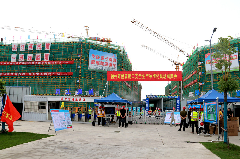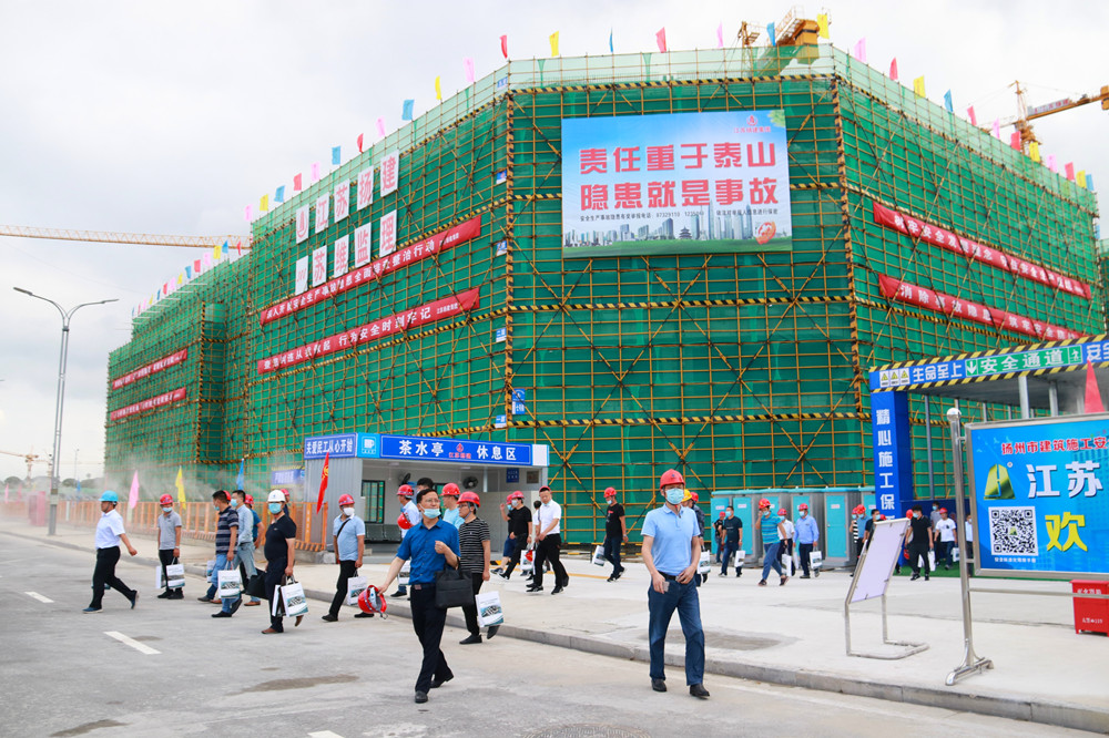 揚(yáng)建網(wǎng)訊 6月29日下午,市住房和城鄉(xiāng)建設(shè)局在集團(tuán)與邗建集團(tuán)共同承建的揚(yáng)州軟件園項(xiàng)目舉行2020年揚(yáng)州市建筑施工安全生產(chǎn)標(biāo)準(zhǔn)化現(xiàn)場(chǎng)觀摩會(huì)。省建筑安全監(jiān)督總站站長(zhǎng)王佳強(qiáng)、市住建局局長(zhǎng)陶伯龍、副局長(zhǎng)薛炳寬、市建工控股董事長(zhǎng)王宏、我集團(tuán)總經(jīng)理鄒厚存、副總經(jīng)理丁傳武及來(lái)自全市各縣區(qū)建設(shè)安全監(jiān)管部門,建筑企業(yè)共300余位代表等出席活動(dòng)。