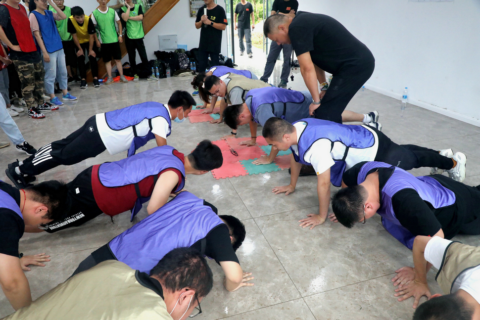 由于天氣原因,本次活動不得不改在室內(nèi)進行。參訓學員以小組為競賽單位,齊心協(xié)力地完成“群龍取水”“極速60秒”“達芬奇密碼”“集體報數(shù)”等團隊挑戰(zhàn)任務,達到了“放松心情、放下包袱、放開手腳、放大魅力”的目的。