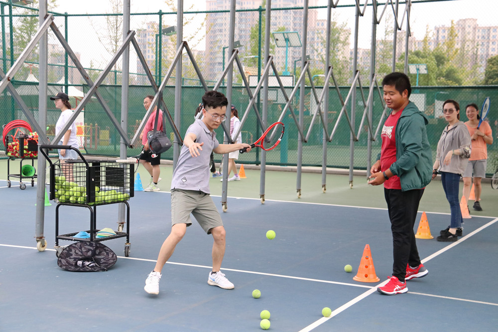 現(xiàn)場2名教練向大家傳授了網(wǎng)球基本的接球動作和技巧要領(lǐng),大家在指導(dǎo)下也逐步掌握了正確的握拍手勢和接球動作。在體驗過程中,大家不僅鍛煉了身體,還放松了心情,體驗到運動帶來的活力與快樂。