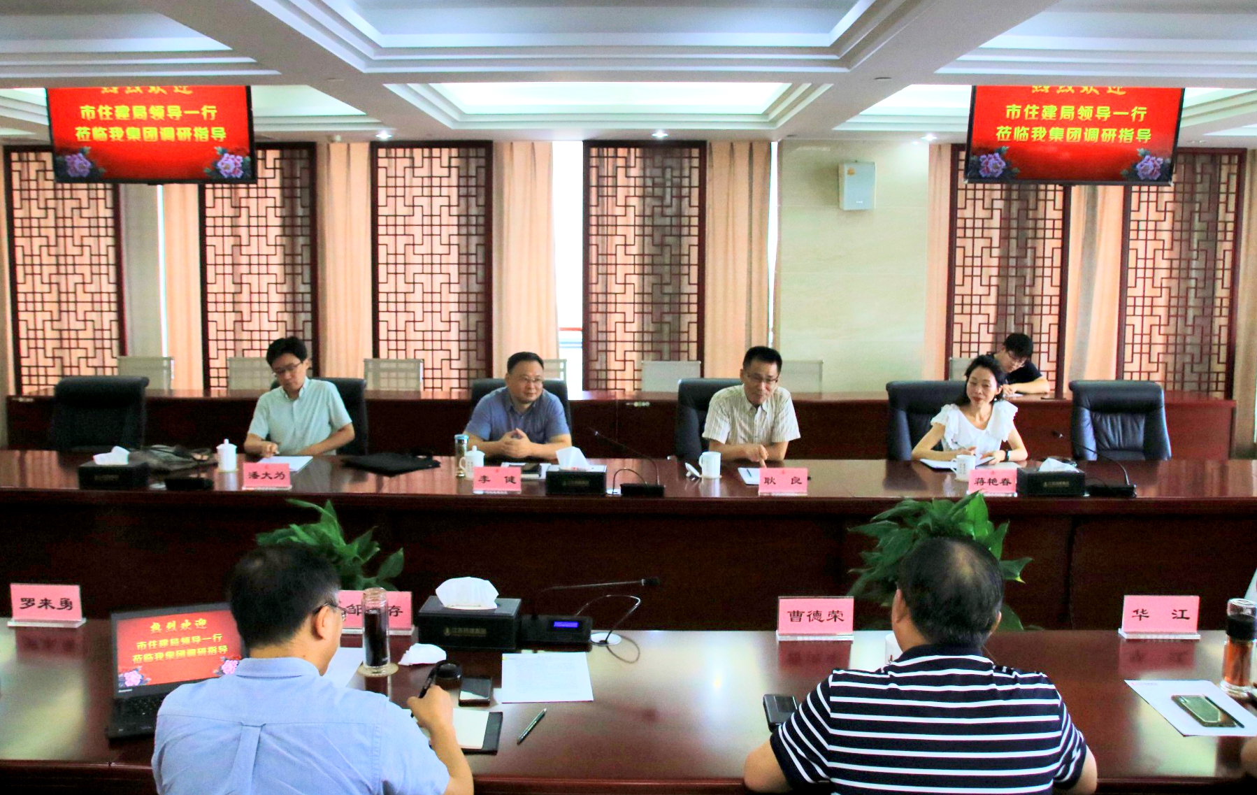 揚(yáng)建網(wǎng)訊 8月25日上午,市住建局副局長(zhǎng)耿良一行4人蒞臨我集團(tuán)考察調(diào)研,華融揚(yáng)建控股董事長(zhǎng)曹德榮、集團(tuán)公司總經(jīng)理鄒厚存等領(lǐng)導(dǎo)參加了調(diào)研會(huì)。