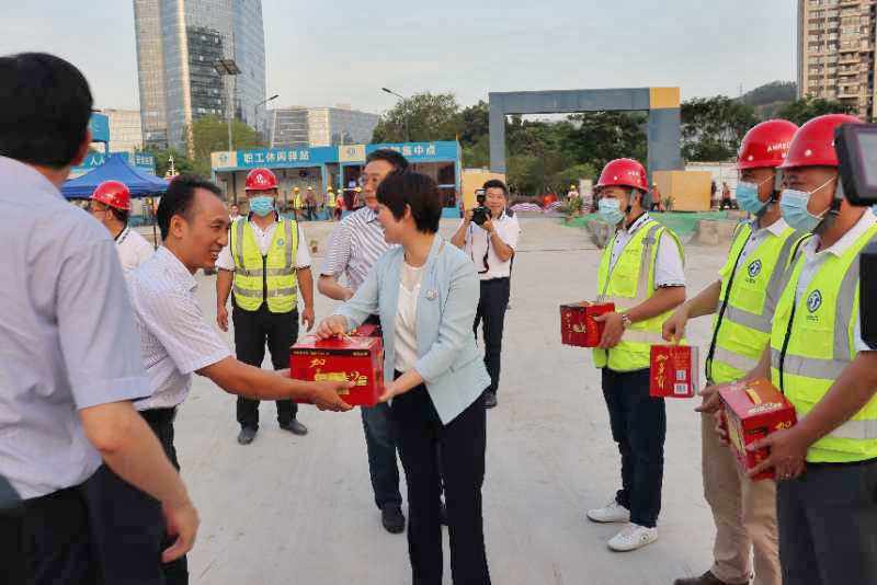 揚(yáng)建網(wǎng)訊 8月23日下午,揚(yáng)州市市長張寶娟、副市長何金發(fā)、方桂林、市政府秘書長尤在晶、副秘書長林寶榮、張小輝等一行冒著高溫酷暑親臨我南方科技大學(xué)(二期)Ⅰ標(biāo)項(xiàng)目,為項(xiàng)目部送去了夏季清涼,并親切慰問了項(xiàng)目部全體員工,極大激發(fā)了員工的幸福感、榮譽(yù)感、歸屬感!