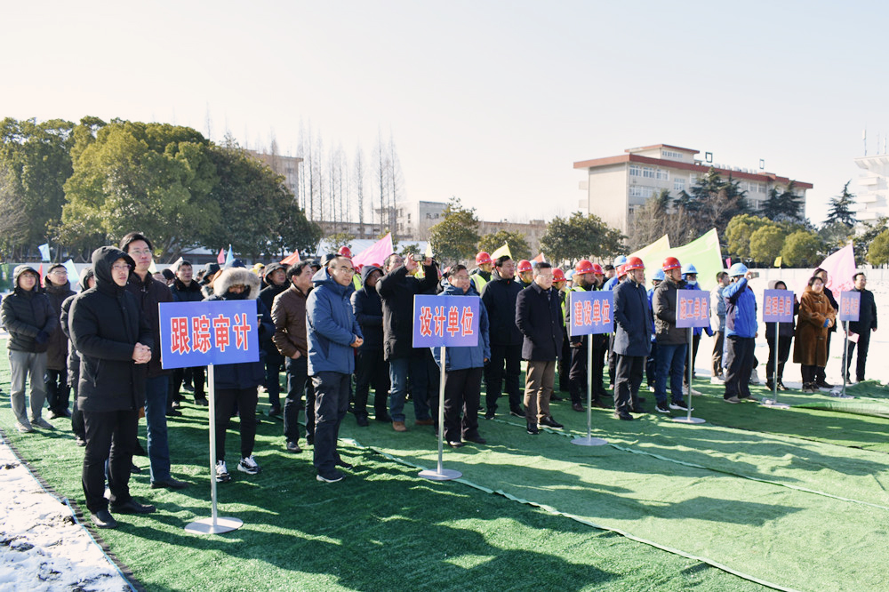 揚(yáng)建網(wǎng)訊 12月30日上午,由三公司承建的揚(yáng)州大學(xué)生命科學(xué)大樓項(xiàng)目順利開工。揚(yáng)州大學(xué)校長(zhǎng)、黨委副書記焦新安、副校長(zhǎng)洪濤、劉巧泉、師生代表、集團(tuán)黨委書記、集團(tuán)公司董事長(zhǎng)康往東、集團(tuán)公司總經(jīng)理鄒厚存、副總經(jīng)理丁傳武、劉海斌等領(lǐng)導(dǎo)、三公司項(xiàng)目管理人員及監(jiān)理、審計(jì)單位等近100人參加了開工儀式。
