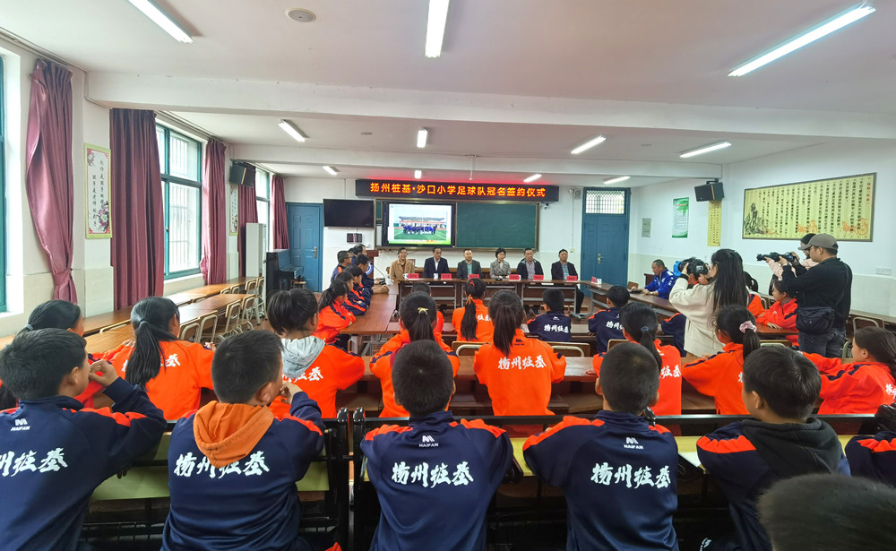 揚(yáng)建網(wǎng)訊 月20日下午,揚(yáng)州樁基、沙口小學(xué)足球隊(duì)冠名簽約儀式在揚(yáng)州市沙口小學(xué)舉行。廣陵區(qū)教育體育局副局長(zhǎng)陶孝志、體育科科長(zhǎng)徐熠、沙口小學(xué)校長(zhǎng)呂祝娟、樁基公司總經(jīng)理于金濤、黨支部書記夏志宏、工會(huì)主席蔣珍如出席活動(dòng)。