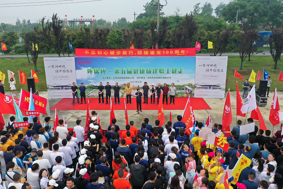 揚建網(wǎng)訊 5月15日上午,集團(tuán)黨委組織組織開展了以“不忘初心,健步前行”為主題的“環(huán)保杯”職工健走活動,喜迎建黨100周年。本次活動在揚州觀月湖揚建現(xiàn)代農(nóng)業(yè)園隆重舉行,集團(tuán)工會、團(tuán)委協(xié)辦,來自總部和基層單位的1223名員工參加;其中,泰州、無錫、上海、海南、深圳、珠海、北方公司分別在當(dāng)?shù)亟M織員工同步開展了健走活動。集團(tuán)理事會主席曹德榮等在揚領(lǐng)導(dǎo)參加了開幕式及健走活動。
