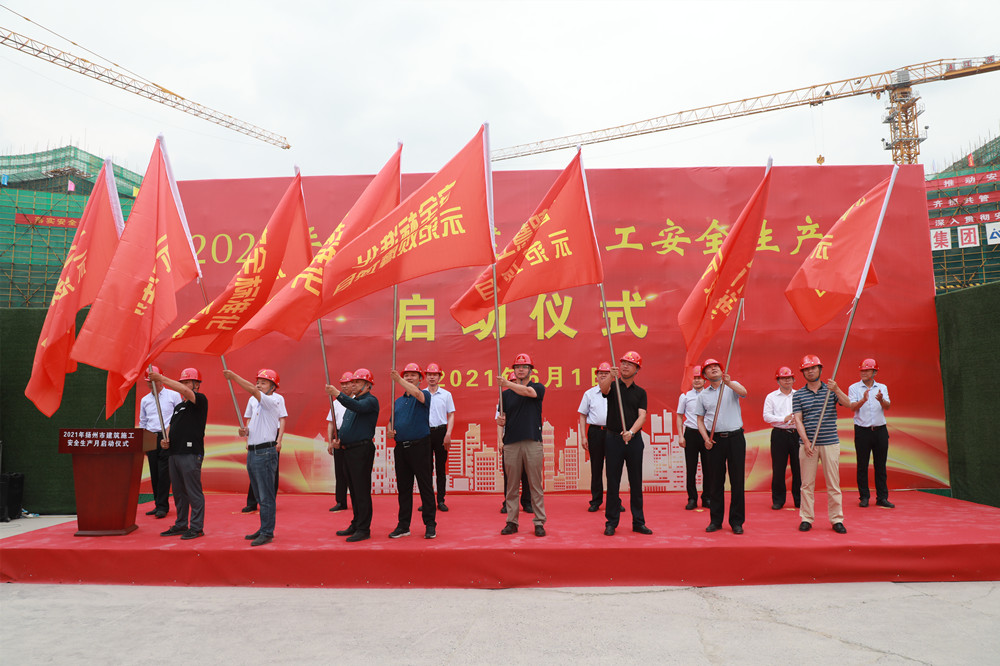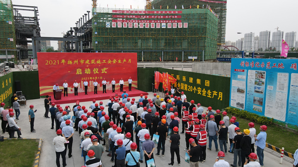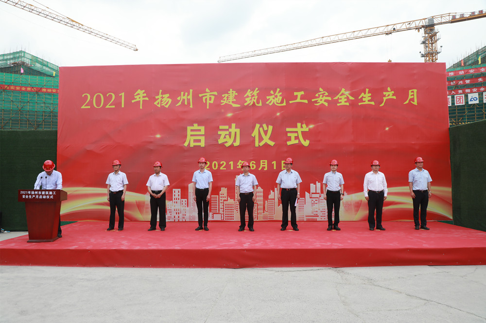 啟動儀式上,陶伯龍局長解讀了2021年揚(yáng)州市建筑施工“安全生產(chǎn)月”活動文件;頤和公司、揚(yáng)建集團(tuán)、揚(yáng)州建筑設(shè)計(jì)院分別代表建設(shè)單位、施工單位、監(jiān)理單位作了交流發(fā)言;我集團(tuán)安全監(jiān)督部朱曉軍部長代表揚(yáng)建頤和項(xiàng)目上臺受旗。