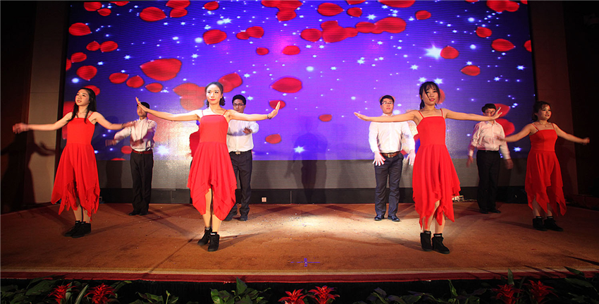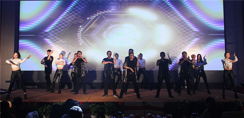 接下來,華中、華鼎兩單位員工聯(lián)合表演了現(xiàn)代舞蹈《青春舞曲》;二公司員工獻演了歌舞《揚建緣》;建祥公司職工小家屬賈宇晨等小朋友演奏了架子鼓《逆戰(zhàn)》。在兩輪互動節(jié)目《微信搖一搖》之后,四公司員工表演了爵士舞《Senorita》;三公司員工表演了五人情景劇《工地激情》;機電環(huán)保公司員工表演了《手勢舞》;華達房地產公司獻演了小品《星悅誠服》;華發(fā)公司員工表演了音樂舞蹈劇《傳承》;市政分公司員工表演了舞蹈《舞動青春》。
