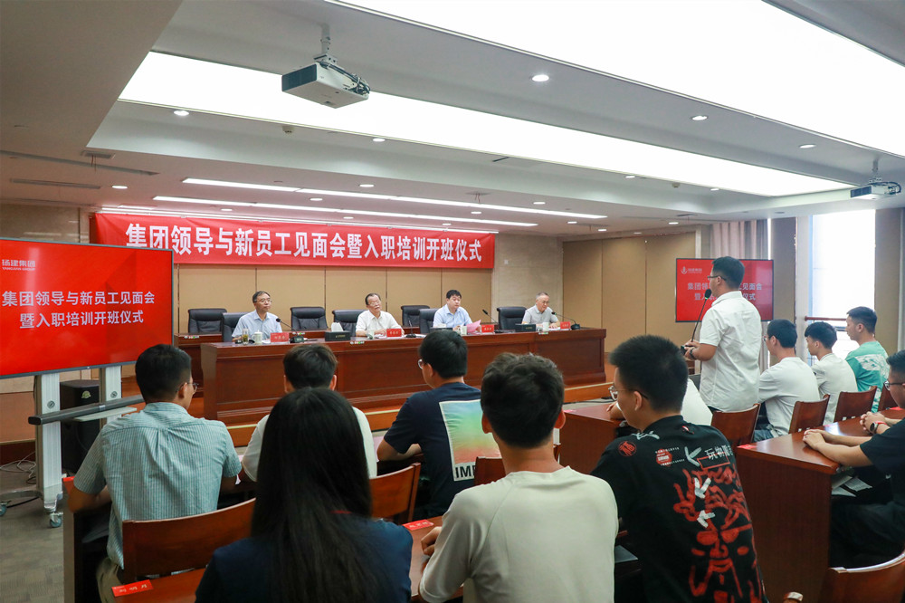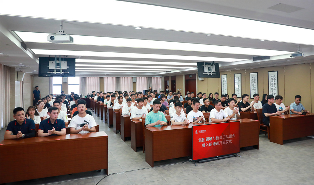 揚建網訊 7月12日上午9時,集團在運河城市廣場B座總部大樓14樓會議室舉行了2021年度集團領導與新員工見面會暨入職培訓開班儀式。會議由集團執(zhí)行總裁呂國兵主持,集團理事會主席曹德榮、集團公司董事長康往東、總經理鄒厚存出席,來自全國各地的104名新入職大學應屆畢業(yè)生參加。