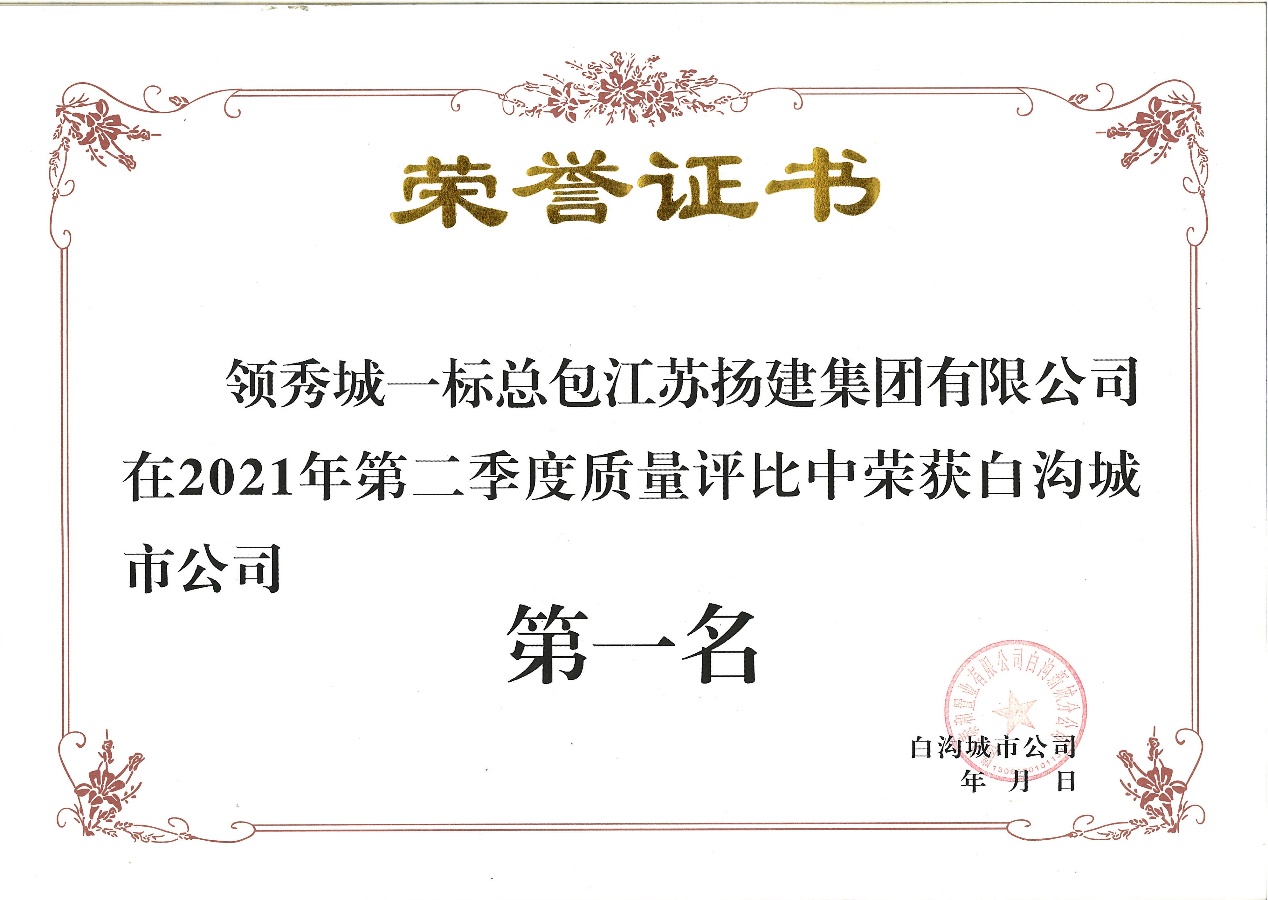 白溝領(lǐng)秀城項(xiàng)目榮獲業(yè)主方二季度質(zhì)量評比第一名