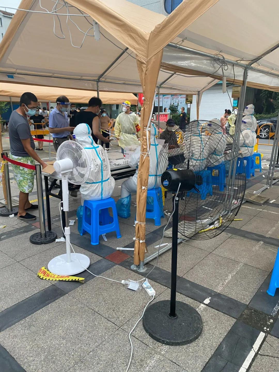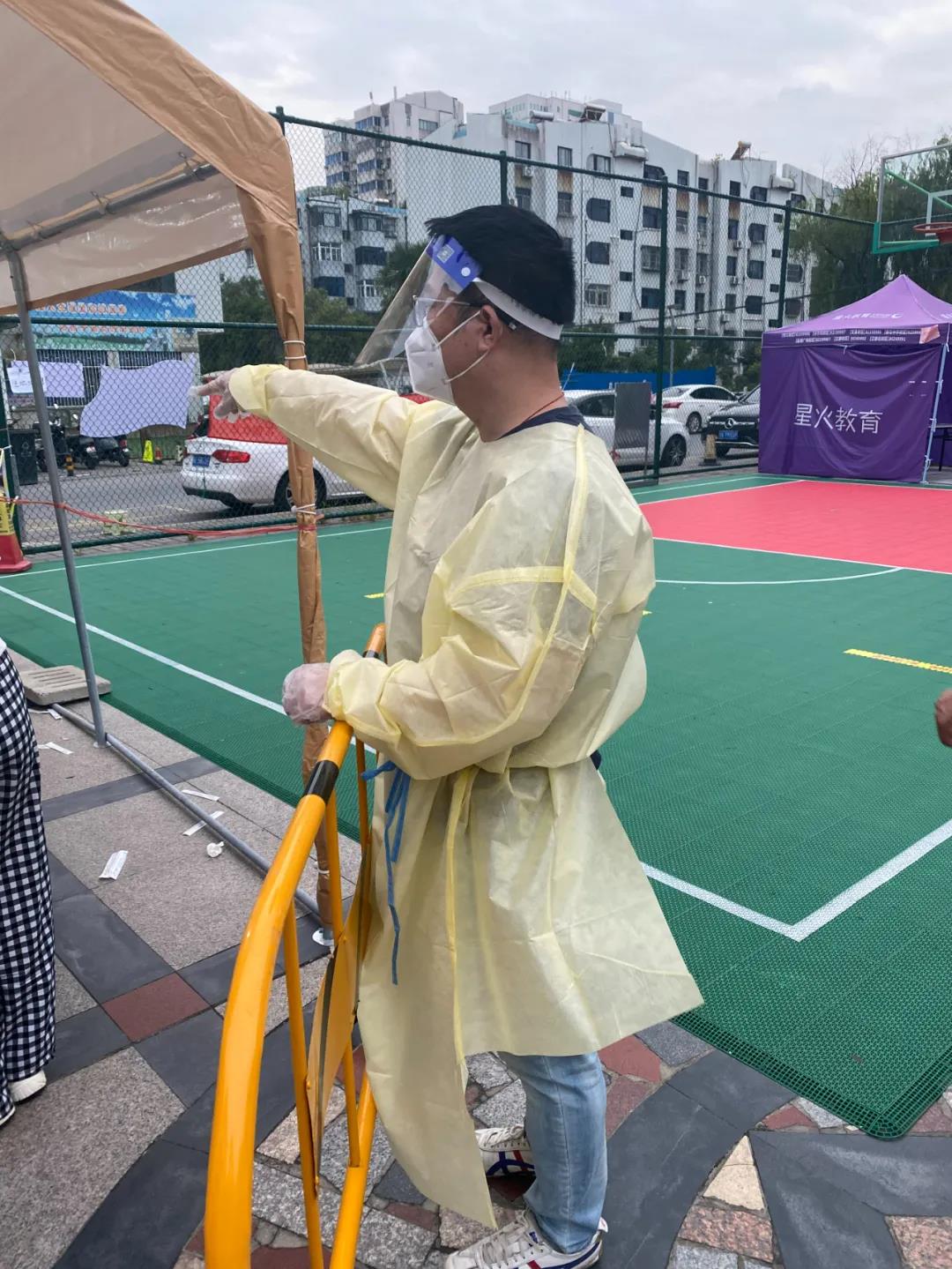 疫情發(fā)生之后,揚(yáng)建小貸立即要求全體員工不得隨便外出,呆在家里就是貢獻(xiàn),居家辦公積極解決處理客戶問題,同時(shí)要求每一位員工每天參加新冠核酸檢測(cè),統(tǒng)計(jì)匯報(bào)檢測(cè)情況和檢測(cè)結(jié)果。為了支持全市抗疫大局,依據(jù)志愿原則,符合條件的員工成立疫情志愿者服務(wù)小組。8月12日志愿者小組統(tǒng)一服從開發(fā)區(qū)財(cái)政局指揮,吳騫、黃河、胡建林三位員工在新城花園小區(qū)擔(dān)任核酸檢測(cè)志愿者,為核酸檢測(cè)試管做好送箱、封箱、收箱工作,以及醫(yī)務(wù)人員的醫(yī)療物品發(fā)放和補(bǔ)充,維持核酸檢測(cè)現(xiàn)場(chǎng)秩序,引導(dǎo)小區(qū)檢測(cè)人員快速且安全的完成檢測(cè)。李石柱依據(jù)小區(qū)要求,在開發(fā)區(qū)金峰社區(qū)寶龍小區(qū)擔(dān)任志愿者,協(xié)助社區(qū)開展工作。天一亮,志愿者就奔赴各自崗位,等核酸檢測(cè)完畢,已經(jīng)是晚上九十點(diǎn)鐘。一天中,他們的衣服濕了干,干了濕。他們忙碌的身影,樹立了揚(yáng)建小貸人的無私奉獻(xiàn)精神。