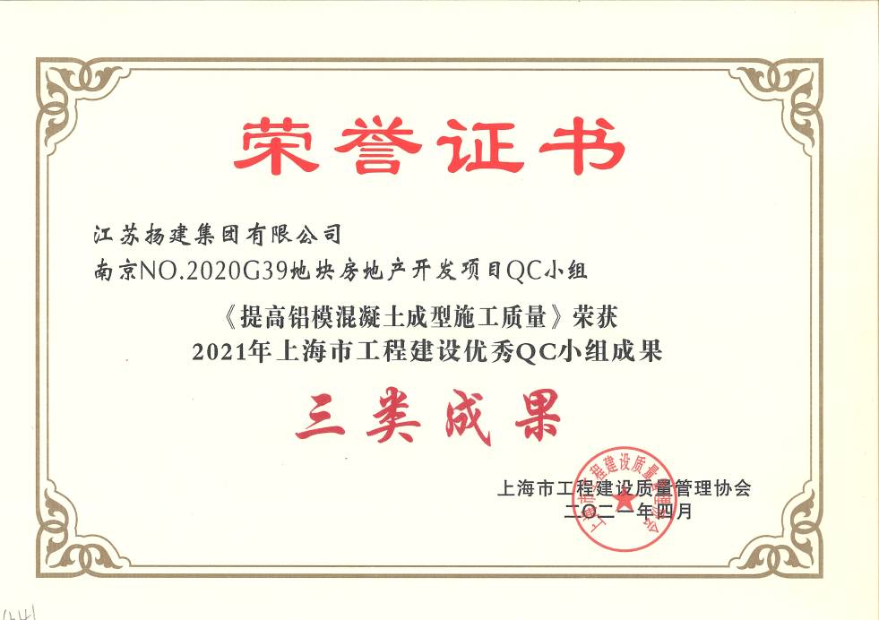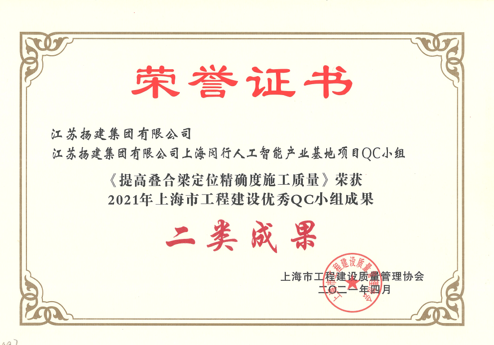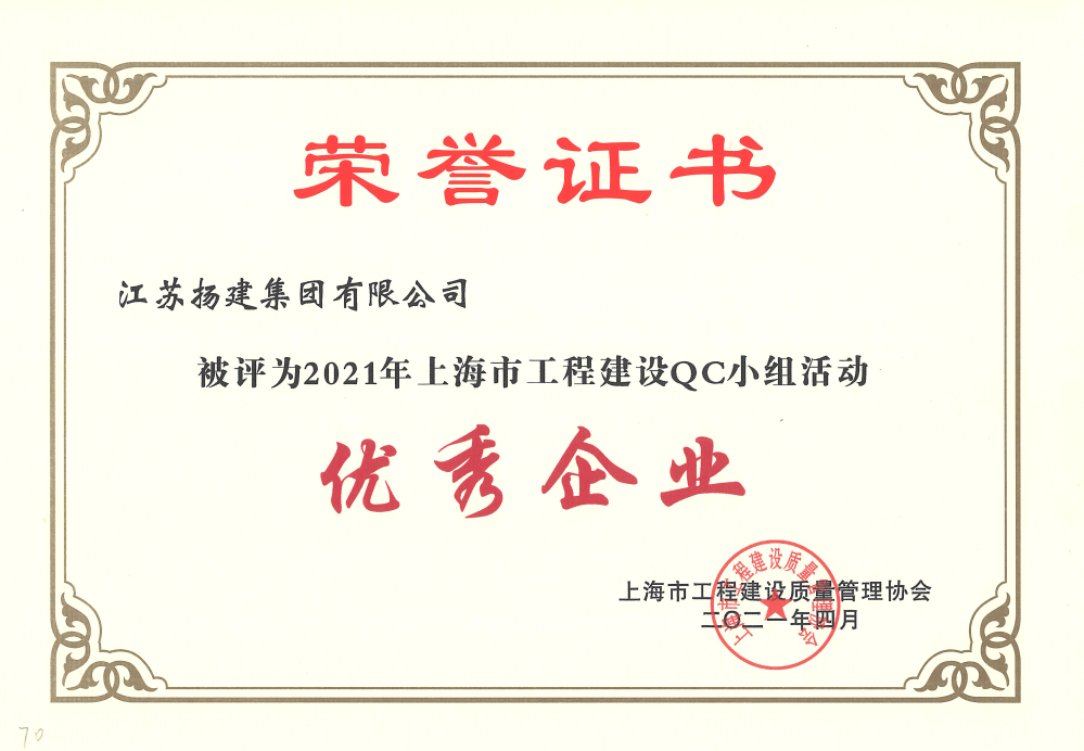 揚(yáng)建網(wǎng)訊 日前在上海結(jié)束的2021年度上海市工程建設(shè)優(yōu)秀QC小組成果評審會上,在通過江蘇省滬辦建管處層層選拔、推薦申報(bào)后,經(jīng)上海市工程建設(shè)質(zhì)量管理協(xié)會質(zhì)量審定委員會審定,江蘇揚(yáng)建集團(tuán)有限公司再次獲評上海市工程建設(shè)QC小組活動(dòng)優(yōu)秀企業(yè)。