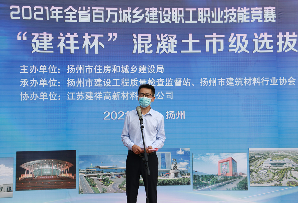 揚(yáng)建網(wǎng)訊 10月14日上午,2021年全省百萬(wàn)城鄉(xiāng)建設(shè)職工職業(yè)技能競(jìng)賽揚(yáng)州市“建祥杯”市級(jí)選拔賽在我集團(tuán)華運(yùn)公司拉開(kāi)序幕。開(kāi)幕儀式由市住建局陳立軍處長(zhǎng)主持;集團(tuán)董事、執(zhí)行總裁、市建筑材料行業(yè)協(xié)會(huì)會(huì)長(zhǎng)沈國(guó)仁出席并發(fā)表致辭;市質(zhì)檢站劉榮祥科長(zhǎng)出席并宣讀比賽規(guī)則;市住建局耿良副局長(zhǎng)出席并作重要講話。本次賽事為市級(jí)選拔賽,由江蘇建祥高新材料有限公司冠名并具體操辦,建祥、榮能、金城、強(qiáng)祥、上建等多家全市知名混凝土企業(yè)參加。