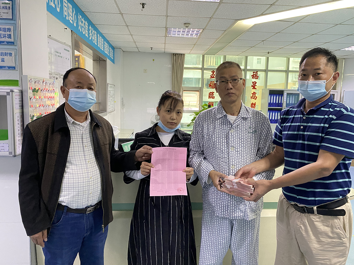 病魔無情人有情,在了解到鄭志明家庭實際困難情況之后,深圳工程處黨支部聯(lián)合工會分會立即發(fā)出對鄭志明家庭的愛心捐款倡議書,并在第一時間得到了工程處廣大職工的積極響應(yīng),短短兩日便籌得愛心捐款共計57490元。捐款活動結(jié)束后,工程處在第一時間將這筆愛心捐款送到鄭志明家屬手中,為面臨困難的家庭送去了力量和希望。
