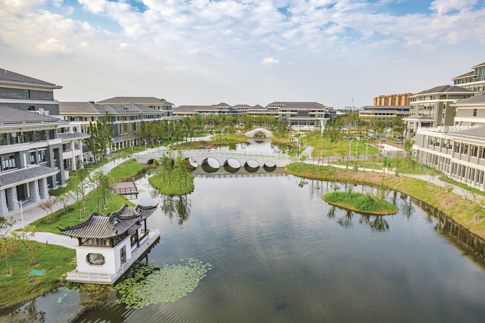江蘇旅游職業(yè)學(xué)院一期項(xiàng)目由揚(yáng)州臨港教育發(fā)展有限公司投資建設(shè),是集團(tuán)公司總承包的第一個(gè)PPP項(xiàng)目,由項(xiàng)目管理一公司具體實(shí)施,環(huán)保公司、華發(fā)公司、樁基公司參建??偨ㄖ娣e20.28萬(wàn)㎡,框架結(jié)構(gòu),2016年12月15日開(kāi)工,2018年12月20日備案,工程總造價(jià)9.37億元,工程首創(chuàng)性地提出了開(kāi)放式校園,以5A級(jí)景區(qū)標(biāo)準(zhǔn)建設(shè)。設(shè)計(jì)注重多元化融合,打造理念最新、環(huán)境最美、文化最優(yōu)的旅游大學(xué)。規(guī)劃了一軸(東西中軸),兩片(南片教學(xué)區(qū)與北片生活區(qū)),一帶(濱水休閑帶)的空間格局。創(chuàng)新性采用產(chǎn)教研游融合,教學(xué)功能和研發(fā)功能同步發(fā)展,實(shí)現(xiàn)人與自然、社區(qū)、校園和諧發(fā)展。本工程還獲得中施協(xié)工程建設(shè)項(xiàng)目設(shè)計(jì)水平評(píng)價(jià)三等成果、二星級(jí)綠色建筑設(shè)計(jì)標(biāo)識(shí)證書(shū)、江蘇省城鄉(xiāng)建設(shè)系統(tǒng)優(yōu)秀勘察設(shè)計(jì)三等獎(jiǎng),江蘇省優(yōu)質(zhì)工程獎(jiǎng)“揚(yáng)子杯”、中國(guó)建筑工程裝飾獎(jiǎng)(裝飾工程)、江蘇省建筑施工標(biāo)準(zhǔn)化星級(jí)工地;江蘇省省級(jí)工法3項(xiàng)、授權(quán)發(fā)明和實(shí)用新型專利各1項(xiàng)、江蘇省QC質(zhì)量成果獎(jiǎng)2項(xiàng)。