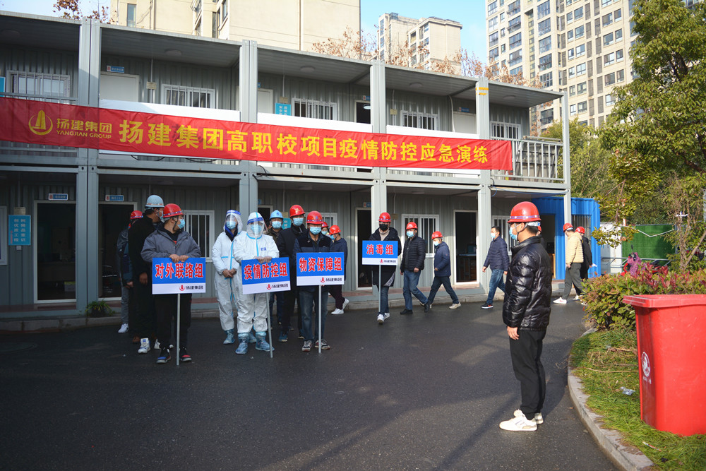 揚(yáng)建網(wǎng)訊 目前,國(guó)內(nèi)已有建筑工地發(fā)生疫情,疫情形勢(shì)依然嚴(yán)峻,為提高全體作業(yè)人員疫情防控意識(shí)和技能,有效應(yīng)對(duì)新型冠狀病毒肺炎疫情,了解疫情防控措施,12月16日,集團(tuán)項(xiàng)目管理三公司高職校項(xiàng)目部聯(lián)合建設(shè)(代建)單位、監(jiān)理單位、各分包施工單位一起開展了疫情防控應(yīng)急救援演練,科創(chuàng)集團(tuán)民興公司副總經(jīng)理陳宇、三公司常務(wù)副經(jīng)理蔣畢忠等參加了觀摩指導(dǎo)。