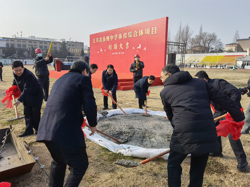 揚建網(wǎng)訊 2022年 1月18日,隨著最后一方混凝土的澆筑結(jié)束,由我集團一公司承建的揚州中學(xué)體育綜合體項目主體順利封頂。揚州市教育局局長周應(yīng)華、揚州中學(xué)校長薛義榮、集團公司總經(jīng)理鄒厚存、集團執(zhí)行總裁陳滸、揚州科教集團有限公司總經(jīng)理吳俊及相關(guān)參建單位人員均到場參加。