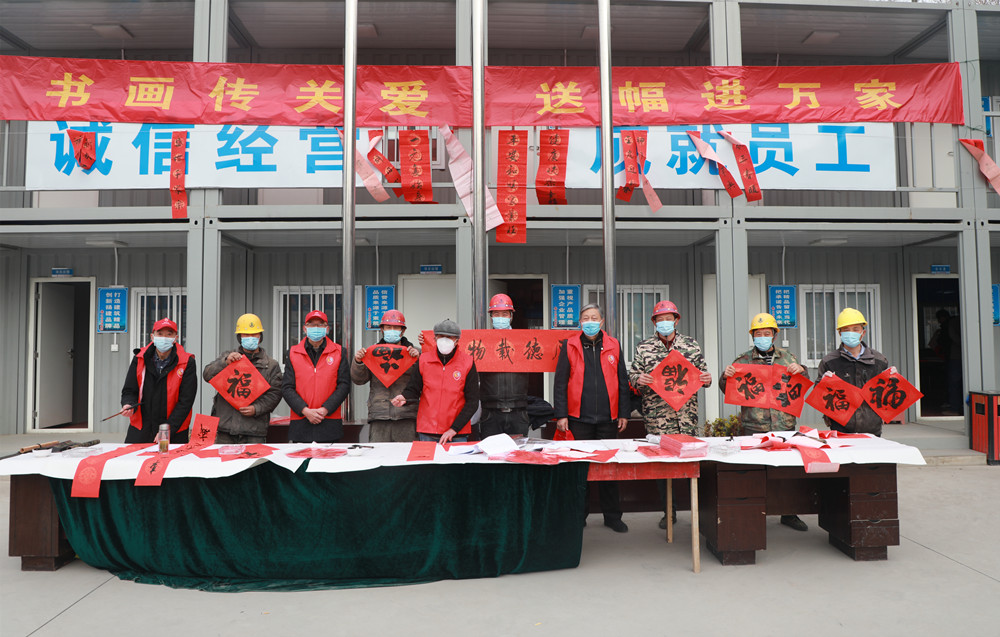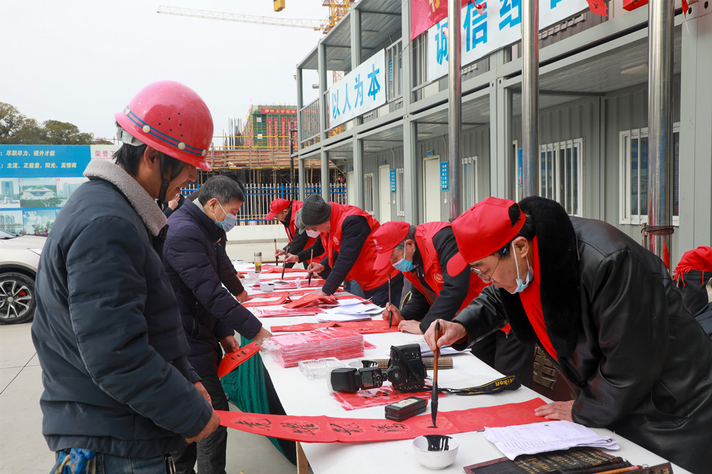 揚(yáng)建網(wǎng)訊 2022年1月20日上午,市人大機(jī)關(guān)老干部黨支部聯(lián)合揚(yáng)州市老干部書(shū)畫(huà)研究會(huì),來(lái)到我集團(tuán)項(xiàng)目管理三公司承建的揚(yáng)州大學(xué)生命科學(xué)大樓項(xiàng)目建設(shè)工地,為駐守工地的農(nóng)民工兄弟們寫(xiě)春聯(lián)、送福字。在新年來(lái)臨之際,提前向他們送上新春祝福,為他們送吉祥,鼓干勁,感謝他們?yōu)?/span>“好地方”揚(yáng)州的城市建設(shè)和發(fā)展默默奉獻(xiàn)智慧與汗水。