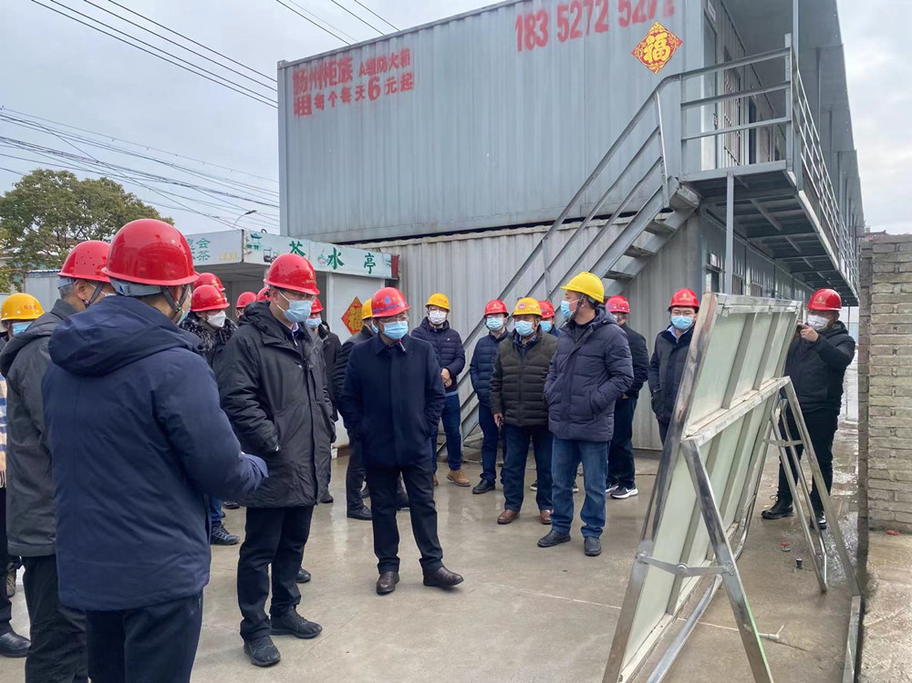 揚(yáng)建網(wǎng)訊 2月8日上午,揚(yáng)州市市委常委、副市長趙慶紅帶領(lǐng)市住建局、區(qū)建設(shè)局等職能部門一行對一公司歐美工業(yè)園C地塊EPC工程總承包工地進(jìn)行了檢查指導(dǎo),集團(tuán)公司副總經(jīng)理丁傳武、陳寶中陪同參與檢查。