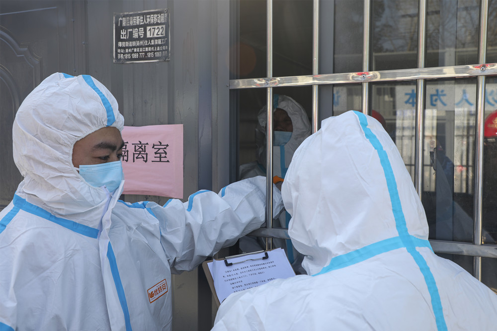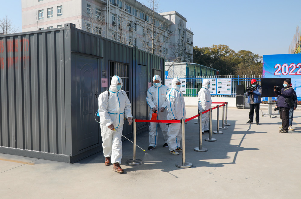 本次疫情防控應急演練圍繞“外防輸入、內(nèi)防反彈”的工作任務,預設工地現(xiàn)場分別發(fā)現(xiàn)一名人員行程碼異常和一名人員發(fā)燒。項目部立即啟動應急預案,按照“快速反應、快速到位、快速處置”的原則安排可疑人員在項目隔離室進行隔離,并對其近期行動軌跡進行登記調(diào)查;項目負責人第一時間將情況上報街道社區(qū)、建設單位、集團公司和主管部門,隨后對施工現(xiàn)場出入口進行封閉,轉(zhuǎn)移可疑人員,開展全面消殺,同時安排專人向職工解疑釋惑,保持職工思想穩(wěn)定。