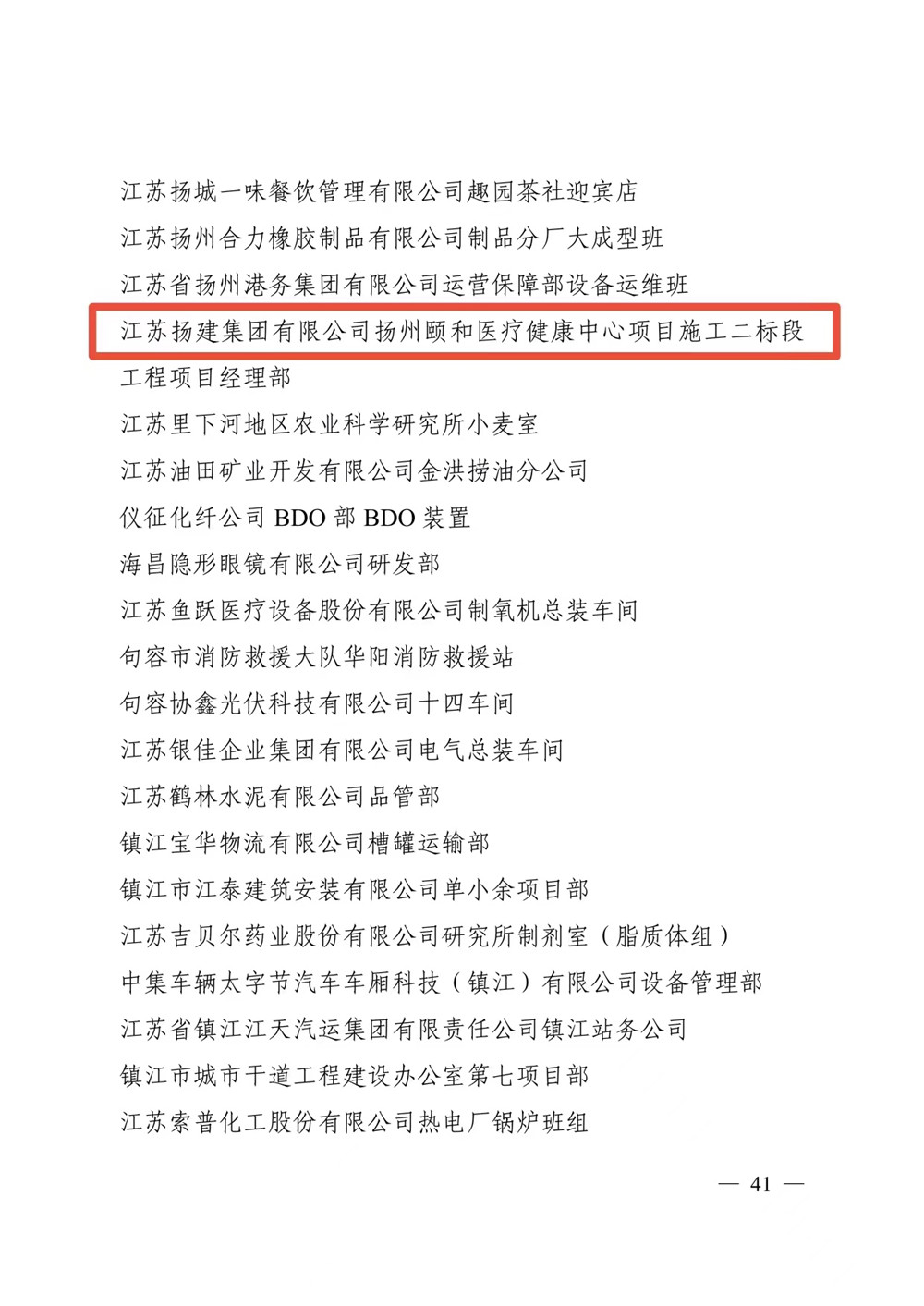 揚(yáng)建網(wǎng)訊 近日,江蘇省總工會(huì)印發(fā)了《關(guān)于表彰2022年度省五一勞動(dòng)獎(jiǎng)和省工人先鋒號(hào)的決定》,我集團(tuán)頤和醫(yī)療健康中心項(xiàng)目管理二標(biāo)段工程項(xiàng)目部被授予“江蘇省工人先鋒號(hào)”稱號(hào)。
