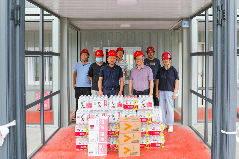 在施工一線慰問過程中,集團(tuán)領(lǐng)導(dǎo)認(rèn)真了解了現(xiàn)場管理人員、隊(duì)組工人工作及生活狀況、防暑降溫及疫情防控情況,代表集團(tuán)公司向高溫天氣下堅(jiān)守崗位、忠于職守的施工人員致以了親切的問候,為大家送來清涼飲料等夏季消暑用品。針對夏季施工生產(chǎn),集團(tuán)領(lǐng)導(dǎo)提醒項(xiàng)目負(fù)責(zé)人,一要根據(jù)夏季氣候特點(diǎn)和項(xiàng)目實(shí)際情況,注重合理調(diào)整現(xiàn)場施工作業(yè)時(shí)間、合理安排不同人群工作崗位和勞動(dòng)強(qiáng)度,做到“抓兩頭避中間,避高就低、避外就里、勞逸結(jié)合”;二要配備充足的防暑降溫食物、藥品、茶水,加強(qiáng)生活區(qū)及食品安全衛(wèi)生管理,確保廣大施工人員以良好的身心狀態(tài)優(yōu)質(zhì)高效完成各項(xiàng)生產(chǎn)任務(wù)。