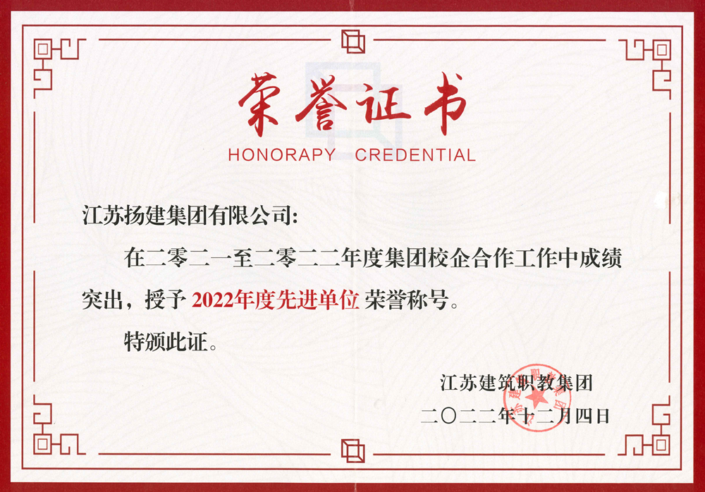 揚(yáng)建網(wǎng)訊 近日,江蘇建筑職教集團(tuán)召開(kāi)了2022年年會(huì),此次年會(huì)肯定了我集團(tuán)在學(xué)生就業(yè)、人才培養(yǎng)、技術(shù)創(chuàng)新、社會(huì)服務(wù)、文化傳承等工作中取得的成績(jī),授予我集團(tuán) “2022年度校企合作先進(jìn)單位”榮譽(yù)稱(chēng)號(hào)。
