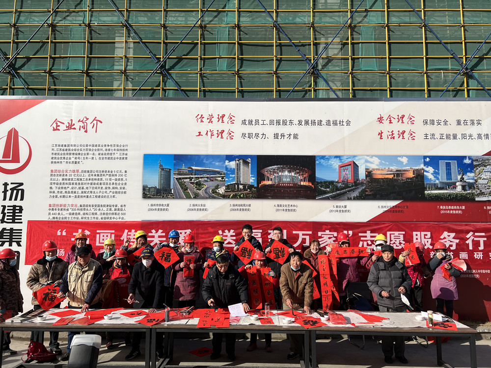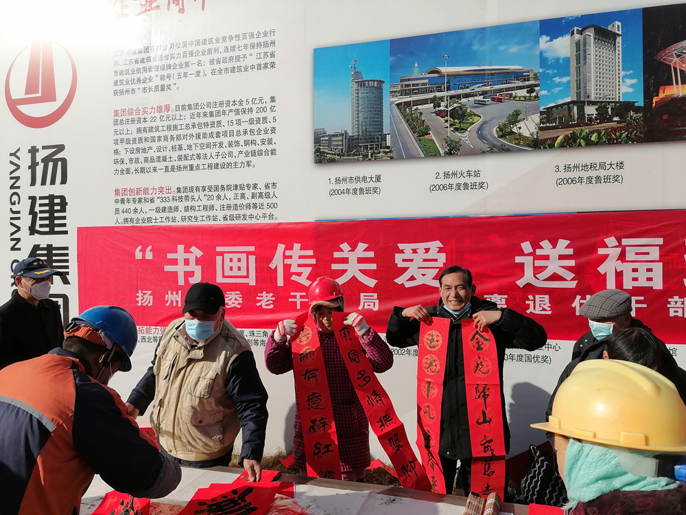 揚建網(wǎng)訊 春節(jié)將至,歲寒情深,1月16日下午,集團聯(lián)合揚州市委老干部局、市離退休干部志愿服務(wù)協(xié)會,在廣陵區(qū)中醫(yī)院項目部開展了“書畫傳關(guān)愛,送福到萬家”志愿服務(wù)活動。