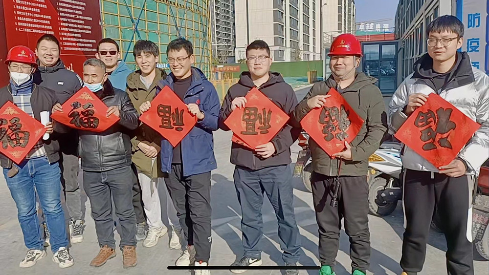 活動吸引了項目部眾多工友的關(guān)注和參與,協(xié)會志愿者們將準備好的春聯(lián)展示出來,一一向現(xiàn)場工友介紹每副春聯(lián)的美好寓意;書法老師則備好筆墨紙硯,根據(jù)員工的不同需求現(xiàn)場揮毫:“金虎歸山辭舊去 玉兔下凡迎春來”“東風多情撫翠柳 喜雨有意醉紅花”......