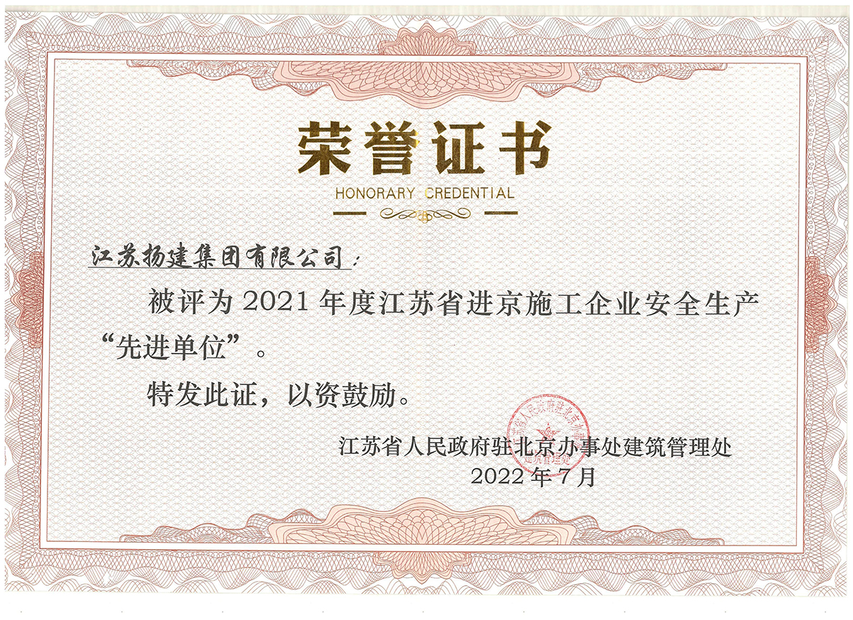 揚建集團公司獲評進京施工企業(yè)安全生產(chǎn)先進集體