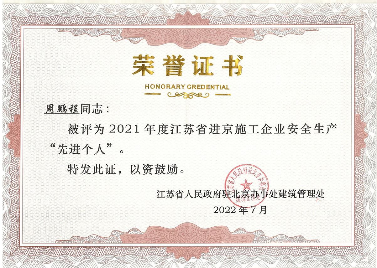 會上,江蘇揚建集團有限公司獲評江蘇省進京建筑業(yè)企業(yè)安全生產(chǎn)先進單位,集團北方公司安全負責人周鵬程獲評江蘇省進京施工企業(yè)安全生產(chǎn)先進個人。