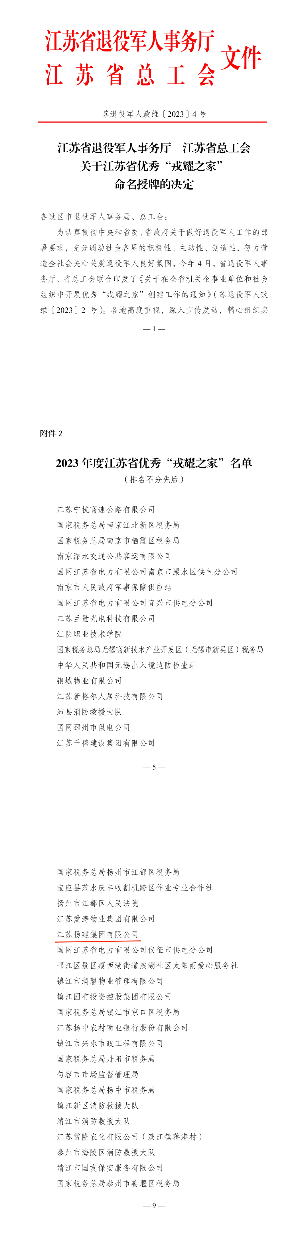 揚(yáng)建集團(tuán)獲評(píng)江蘇省優(yōu)秀“戎耀之家”