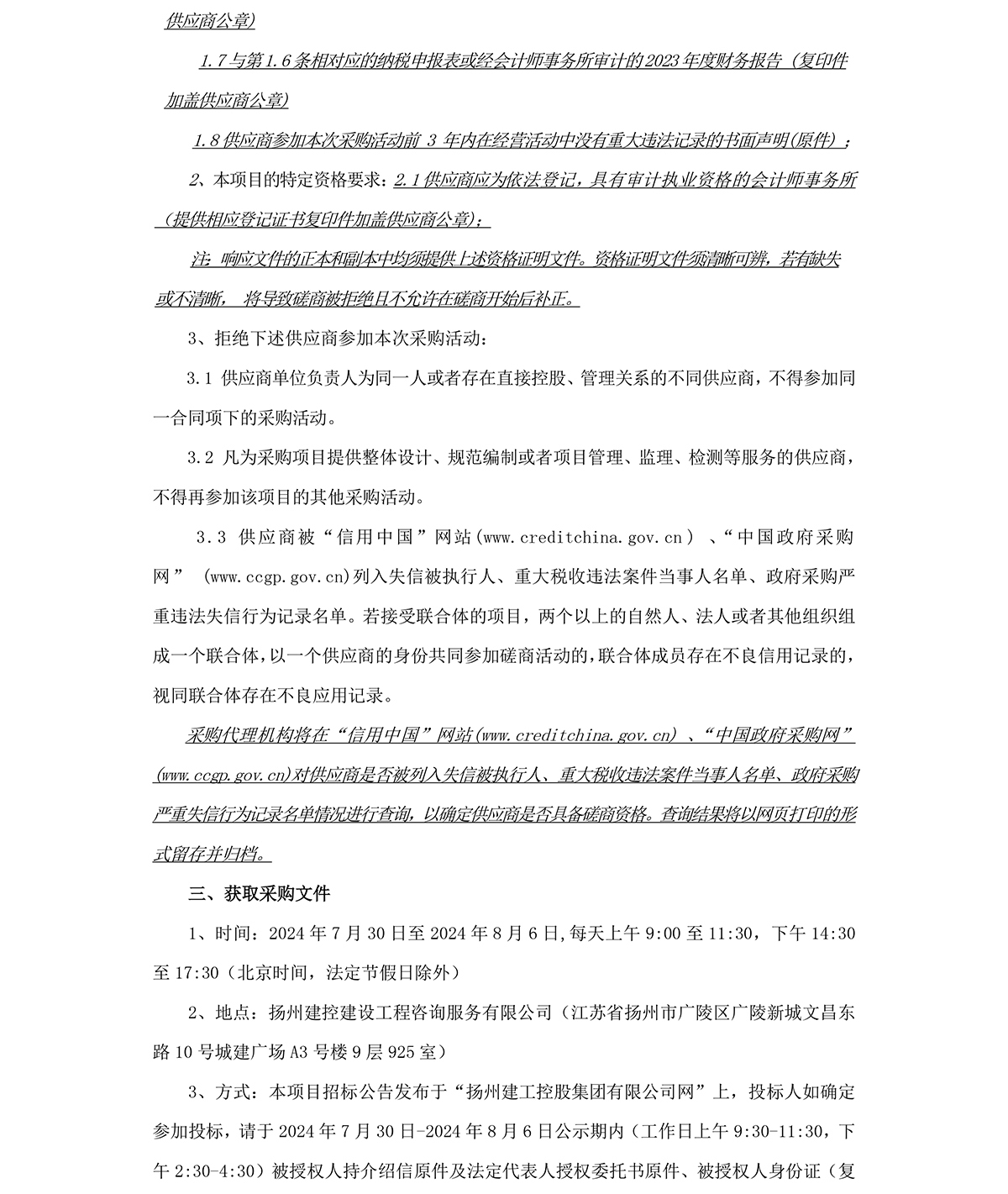 附件:江蘇揚(yáng)建集團(tuán)有限公司關(guān)于股權(quán)收購審計(jì)服務(wù)項(xiàng)目競爭性磋商采購公告