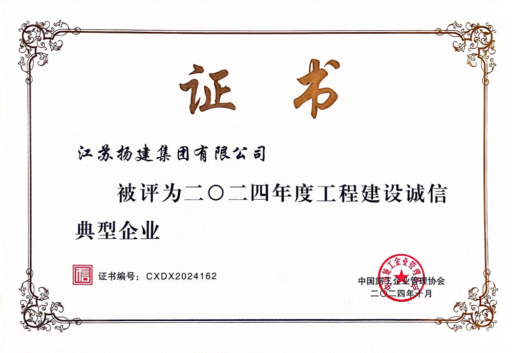 揚(yáng)建集團(tuán)獲評(píng)全國(guó)工程建設(shè)誠(chéng)信典型企業(yè)