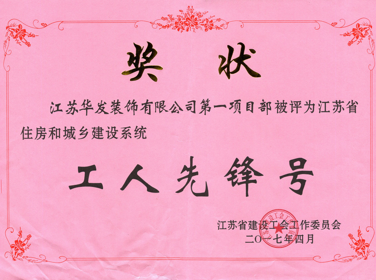 揚建網(wǎng)訊(華發(fā) 朱明星)近日,江蘇省建設(shè)工會工作委員會表彰“江蘇省住房和城鄉(xiāng)建設(shè)系統(tǒng)工人先鋒號”,華發(fā)公司第一項目部榮獲該項殊榮。這一榮譽的取得,是對華發(fā)公司在城市建設(shè)、關(guān)愛職工方面所作出成績的充分肯定。