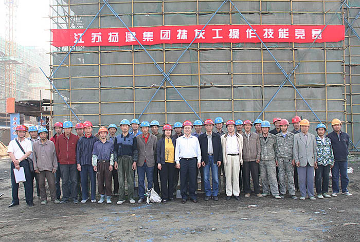 為了通過勞動競賽不斷提高員工們的安全、質(zhì)量、規(guī)范操作等意識,形成良好的比、學(xué)、趕、幫、超氛圍;同時也是為了積極響應(yīng)揚州大學(xué)創(chuàng)“雙優(yōu)”活動,以勞動競賽推動重點工程質(zhì)量水平的提升,更好地回報業(yè)主的厚愛。2009年5月26日,集團公司2009年度職工技能競賽在揚州環(huán)境資源學(xué)院工程施工現(xiàn)場隆重開幕。首項賽事內(nèi)容為抹灰工操作技能競賽。
