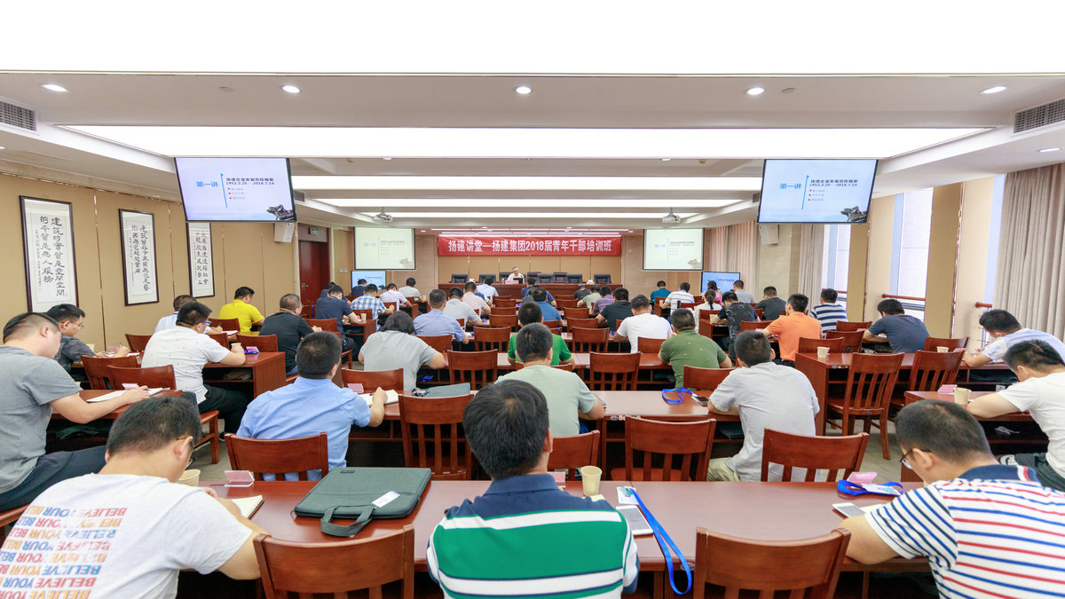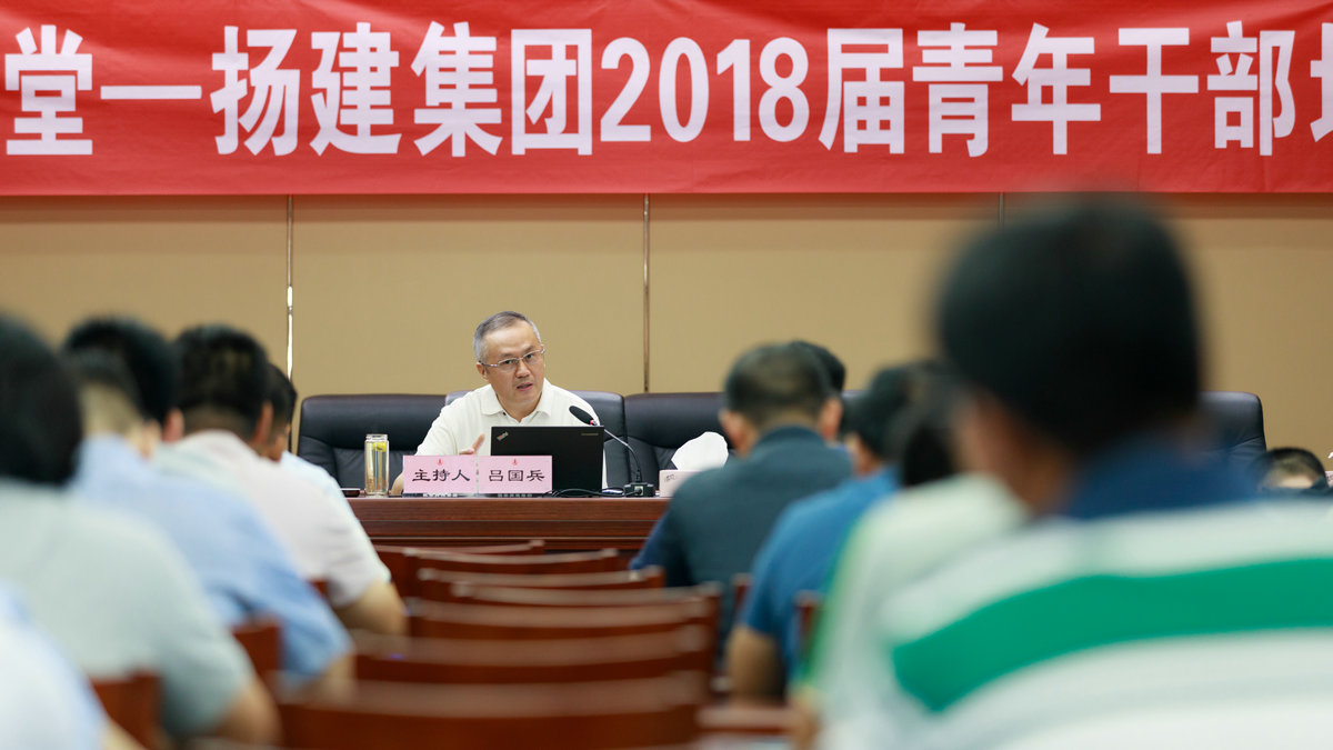 揚建網(wǎng)訊(人力資源部 張興安/文 吳旭、梁明建/攝)為進一步培養(yǎng)青年干部班子企業(yè)文化認(rèn)同感、歸屬感,強化個人和團體管理協(xié)作能力,豐富實踐技能、專業(yè)知識等文化軟實力。7月14日上午,集團 “揚建講堂——揚建集團2018屆青年干部培訓(xùn)班” 在運河城市廣場B座14樓會議室隆重開班?;顒佑杉瘓F董事呂國兵同志主持,董事長曹德榮、黨委書記康往東、總經(jīng)理鄒厚存、黨委副書記張振新、陳滸出席并講話,52名青年干部參加了學(xué)習(xí)。